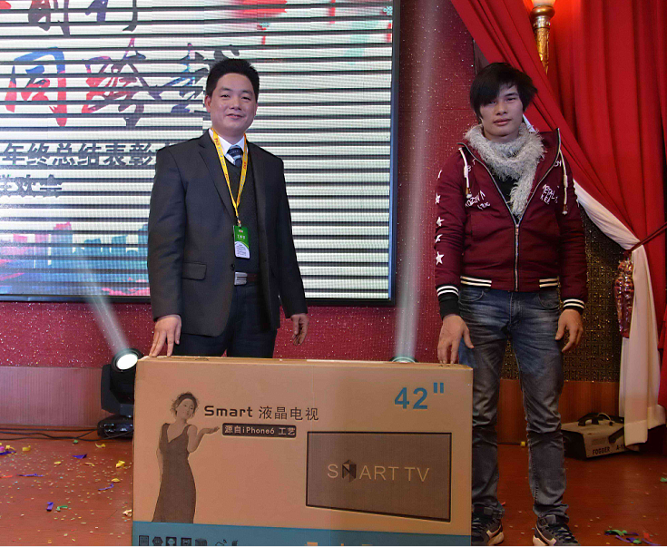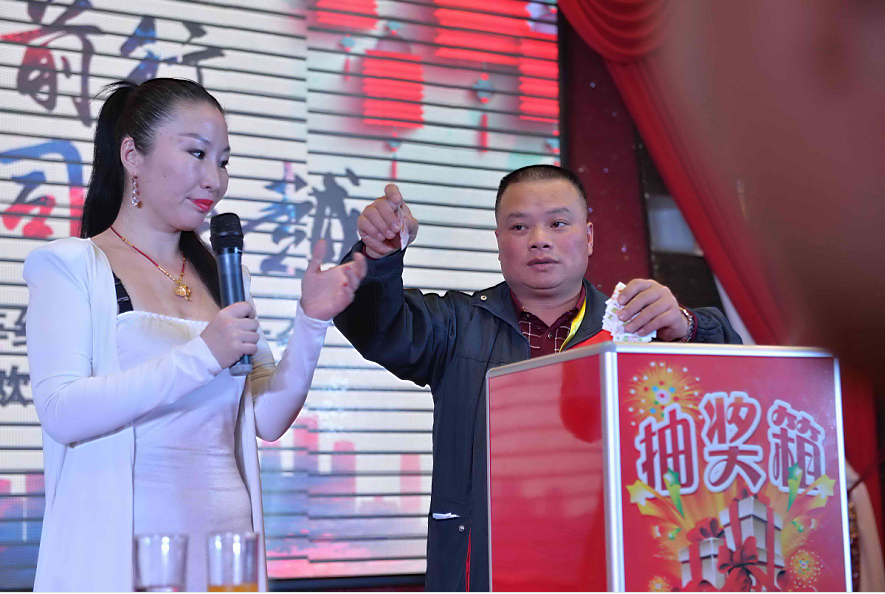 晚会(x)在美酒佳肴、语W喧阗、歌舞升q뀁热Ҏ(gu)序中q行。现场抽取各{大奖,分别有:(x)特等?span>1名、一{奖5名、二{奖30名、三{奖50名、四{奖200名、幸q奖20名?/span>